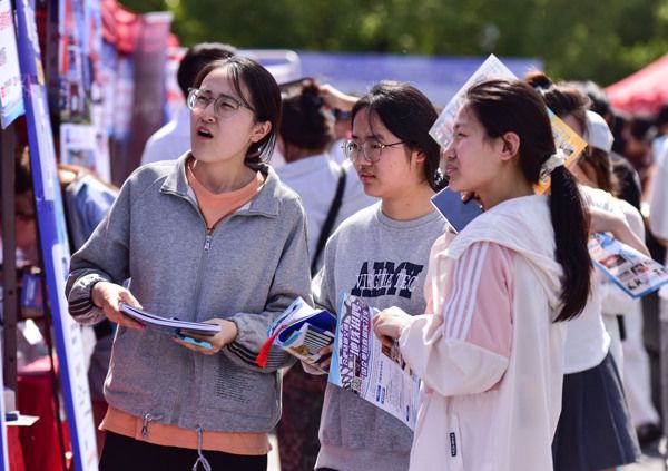 安徽阜阳:应届毕业生校园招聘会上查看招聘信息