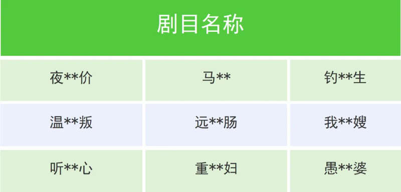 用户名:屿**剧、果***剧、剧*饭、甜***天、颜**剧、遇**剧、北**剧、香**剧、巨***场、天**剧。