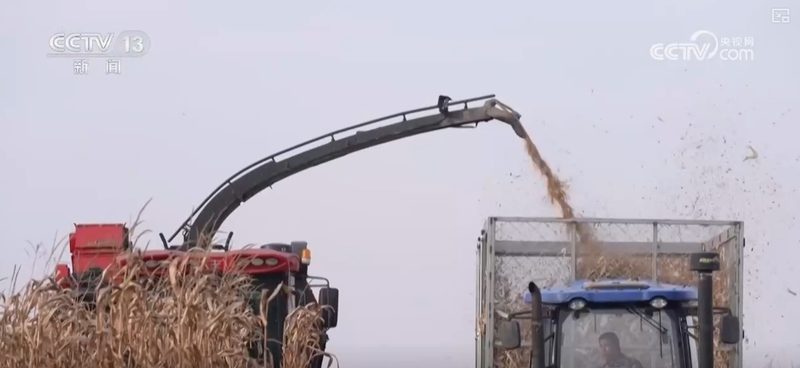 除了从肉牛种源上发力外,吉林省还在牛的饲料上做文章,推出了“茎穗兼收”一次性作业补贴政策,让肉牛养殖由“吃干秸秆”向“吃膨化罐头”转变。“膨化罐头”指的是发酵后的秸秆饲料,也就是联合收割机在收割玉米的同时,秸秆被同步粉碎打包发酵,形成优质饲料。