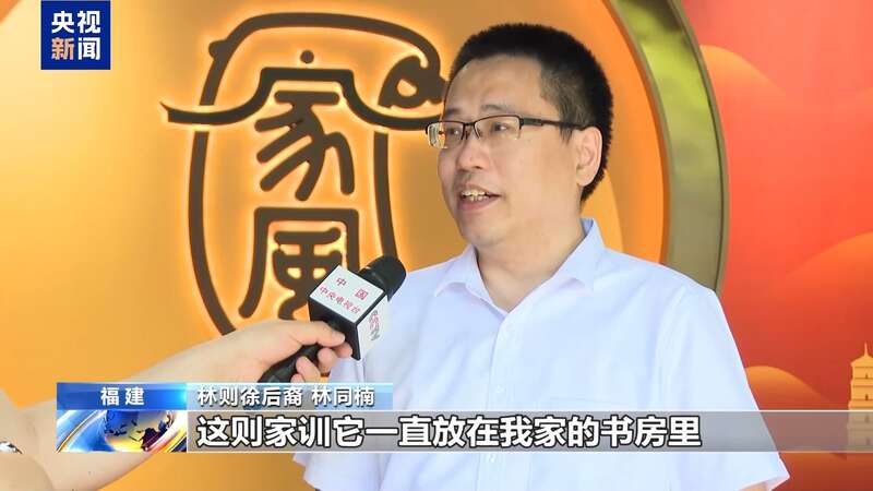 林则徐后裔 林同楠:这则家训一直放在我家的书房里,他教会了我做人要宽以待人,严以律己。刚正做事、清廉、专注、专一。我会把这种精神代代传承下去。