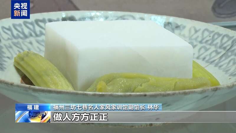 福州三坊七巷名人家风家训馆副馆长 林华:林则徐家,有一年大年三十晚上,一家十几口人就吃这一盘素炒豆腐。素炒豆腐的寓意非常好,做人方方正正,做事清清白白。
