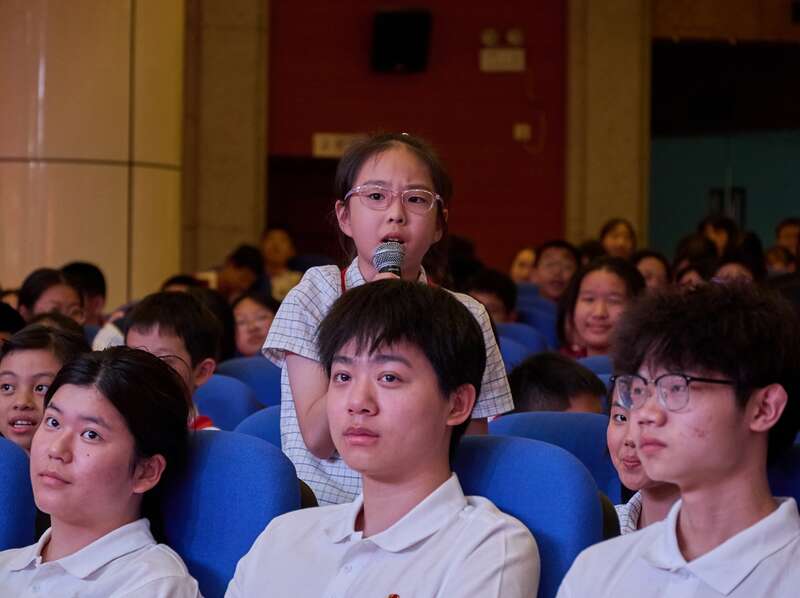 在问答互动环节,许多同学对军旅生活和成长规划等问题积极提问。许卓远说:“作为边防军人的子女,我非常高兴能够将‘清澈的爱,只为中国’的精神传递给同学们,也非常荣幸能够为双拥教育工作贡献一份自己的力量。”