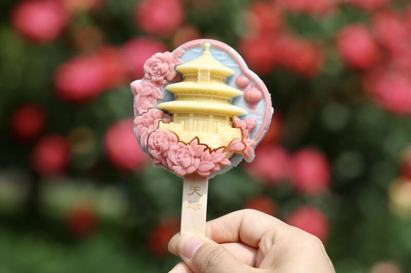 主展区设在历史悠久的天坛月季园,种植“大花”、“丰花”、“地被”、“藤本”等各类月季。今年,天坛公园特别推出了一款以月季为主题的文创冰淇淋,经过特殊工艺把三种颜色(粉,黄,蓝)呈现在一个冰淇淋上。