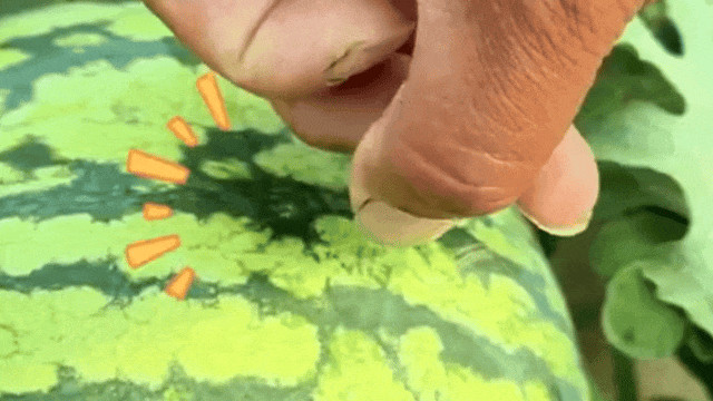 有着五年验瓜经验的马旗,在当地西瓜市场上是为数不多的女验瓜师,虽然入行不是太久,但她通过外观观察、敲击听声等方式,可以快速判断出西瓜的成熟度、甜度和口感,为采购商和消费者提供品质保障。