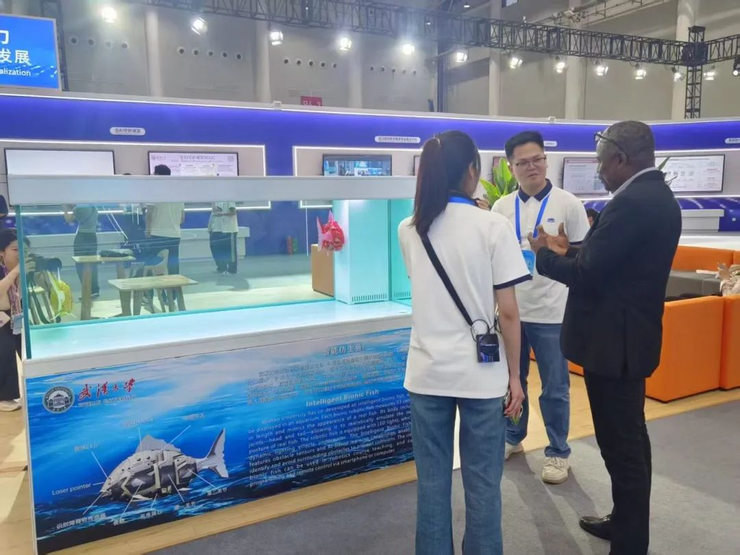 2025世界数字教育大会期间,武汉大学系列成果惊艳亮相。在大会教育数字化成果展上,武汉大学的“启明星一号”卫星虚拟仿真教学系统和智能仿生鱼,吸引了中外来宾驻足参观。