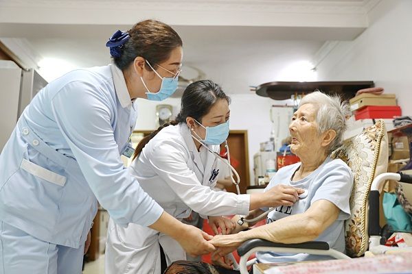 2025年5月19日,浙江嘉兴经济开发区嘉北街道嘉州美都社区,海警医院医护人员上门为行动不便居民查体。