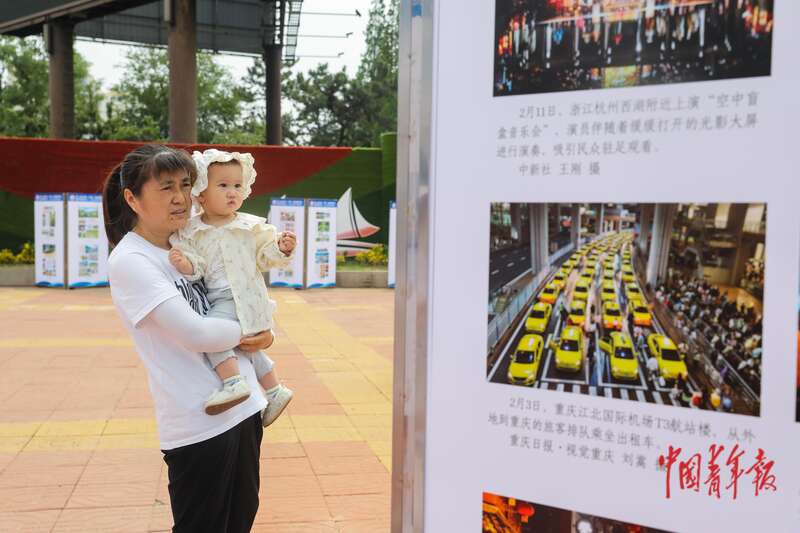 5月22日,山东日照,市民参观“逐梦新时代”全国主流媒体新闻摄影展。中青报·中青网记者 孔斯琪/摄