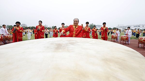 江苏泗洪:非遗锣鼓表演丰富学生校园生活
