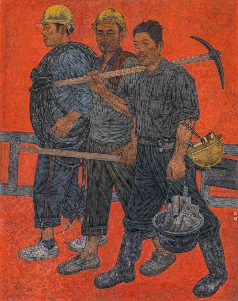 展览分为四个主题:“筑基·潮痕”以粗粝笔触,致敬初代劳动者的城市化奋斗历程;“守望·暖阳”用细腻画笔,捕捉农村留守群体的亲情羁绊;“群像·实录”借素描肖像与文字档案,记录新生代劳动者的鲜活面貌;“多元·共生”以创新艺术语言,探索劳动者题材的当代表达。