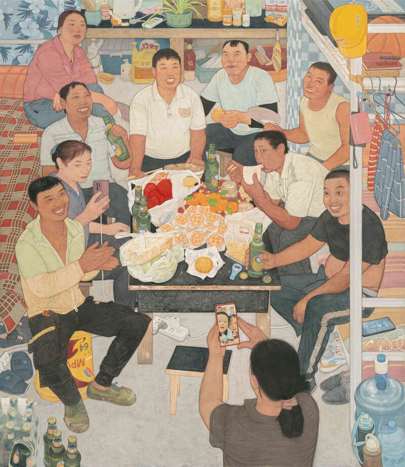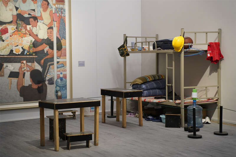 展览以老一代产业工人、农村留守老人与儿童、新生代产业工人3个群体为叙事主线,通过纸本设色、绢本设色、素描、装置、影像等多元媒介,构建立体观展体验。