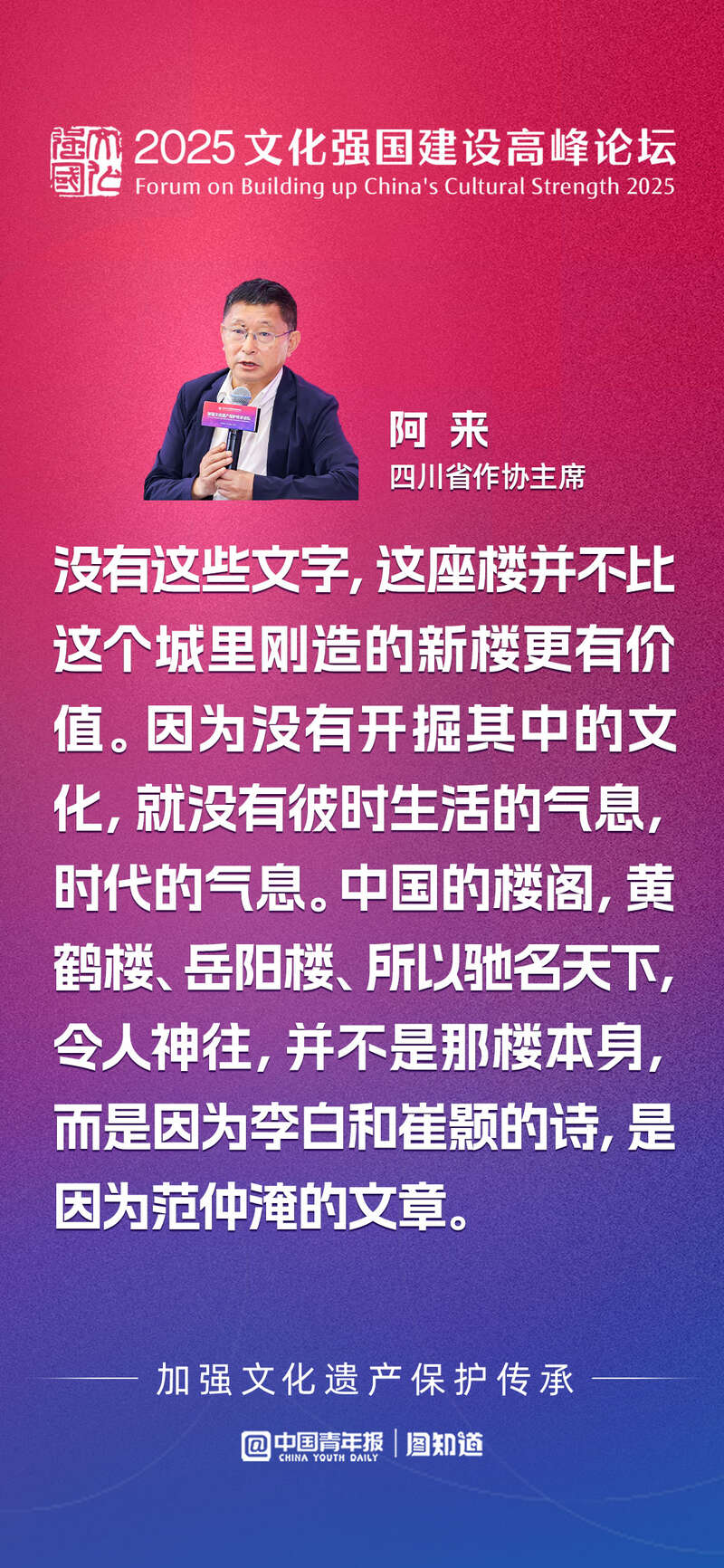 5月27日,在2025文化强国建设高峰论坛期间,加强文化遗产保护传承论坛在广东省深圳市举办。论坛聚焦推动“老城保护与复兴”,多位相关大咖汇聚一堂,通过主旨演讲、案例分享、圆桌座谈等形式,开展深入研讨、分享经验做法,推动形成文化遗产保护思想共识。