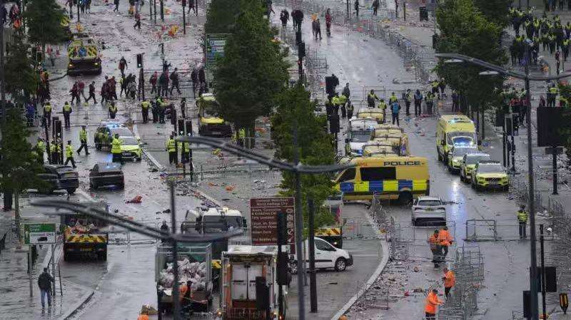 利物浦市中心26日下午发生汽车冲撞球迷事件,肇事车辆随后在现场被拦停。事发时,数万名球迷正沿街庆祝利物浦队赢得英超联赛冠军。
