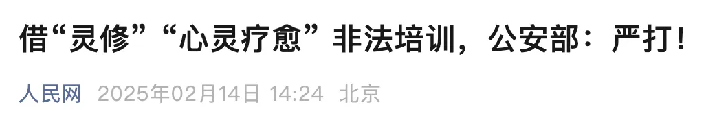 公安部:严打借“灵修”“心灵疗愈”非法培训