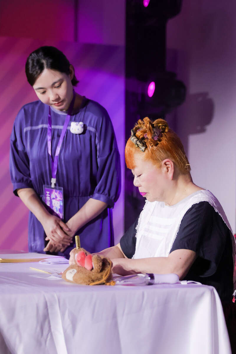 Hello Kitty这个诞生于零钱包上的卡通形象,从1974年至今,历经半个世纪的时光流转,凝结着几代人的情感记忆。开幕式当天,主人公Hello Kitty现身,与美乐蒂(My Melody)、酷洛米(Kuromi)等她的朋友们齐聚北京时代美术馆。Hello Kitty的设计师山口裕子也从日本来到现场签绘。