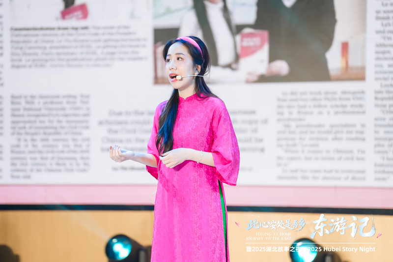 “活结们,七了冇?”在数字人楚音Q萌的武汉方言问候中,“此心安处是吾乡˙东游记 Journey to the East”暨 “2025 湖北故事之夜”正式拉开帷幕。5月29日晚,近400名来自湖北各高校的中外学子和外籍友人在华中科技大学光电学院报告厅共同演绎一场跨文化交流的盛宴。9位来自不同国家的留学生和外籍网红博主登台,深情讲述自己与中国的奇妙缘分。