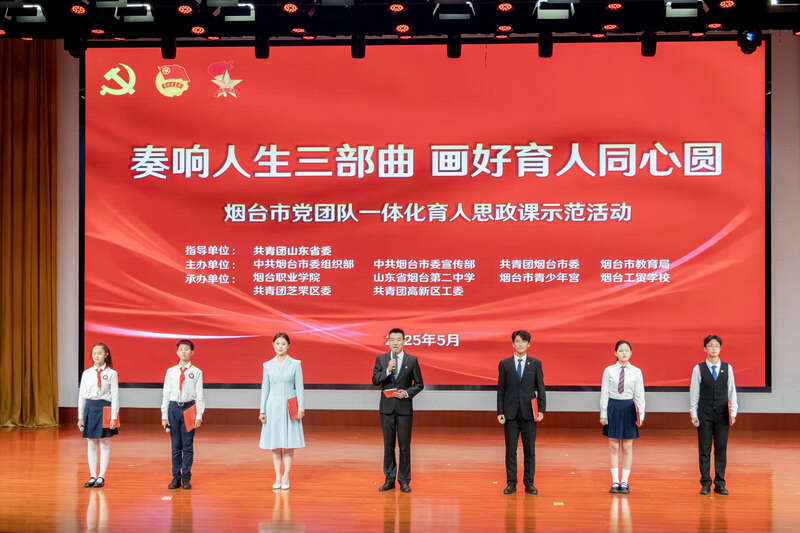 中国青年报客户端讯(中青报·中青网记者 邢婷)5月29日,“奏响人生三部曲 画好育人同心圆”——山东省烟台市党团队一体化育人思政课示范活动在烟台职业学院举办。该活动由共青团山东省委指导,中共烟台市委组织部、中共烟台市委宣传部、共青团烟台市委、烟台市教育局联合主办,旨在深入贯彻落实党建带团建、队建的工作要求,打造党团队一体化育人链条。团山东省委有关部室负责同志,各主办、承办单位有关负责同志出席活动,来自全市的党员、团员、少先队员代表齐聚一堂,共同见证信仰的接力与青春的誓言。