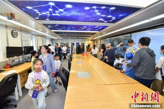 民众参观“雪龙2”号极地科学考察破冰船物理实验室。