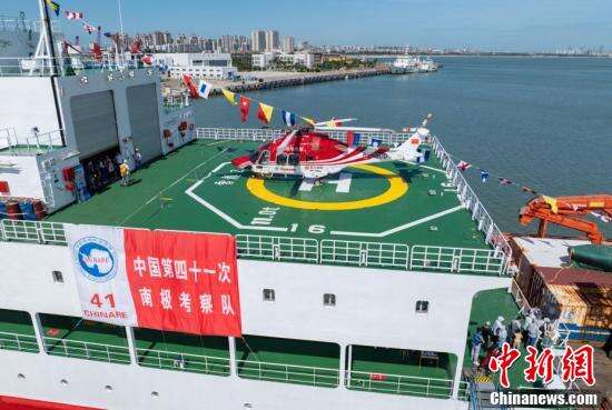 “雪龙2”号极地科学考察破冰船飞行平台。(无人机照片)