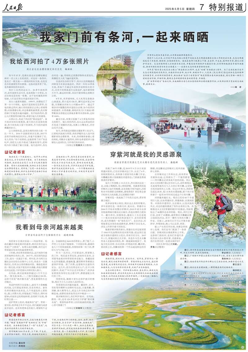 如今,我凭借巡河摄影在摄影界小有名气。以黄柏河流域为背景,我的多幅作品入选中国摄影家协会摄影展。未来,我将继续拿着心爱的相机,用脚步丈量西河,同时也希望更多人能够加入巡河队伍,守护我们的母亲河。