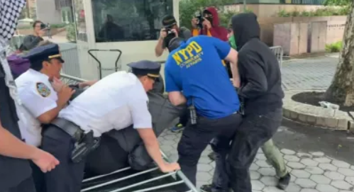 《纽约邮报》称,当天在纽约曼哈顿,愤怒的蒙面示威者对警察大喊“混蛋”,并向一辆试图离开美国移民法庭所在地的无标志白色车辆投掷物品。视频显示,当时现场有6名身穿制服的美国国土安全部官员一边大喊“后退,后退”,一边将示威者推向旁边。大约两分钟后,这辆车得以驶离,但随后现场陷入混乱,近40名警察继续与示威者发生冲突。