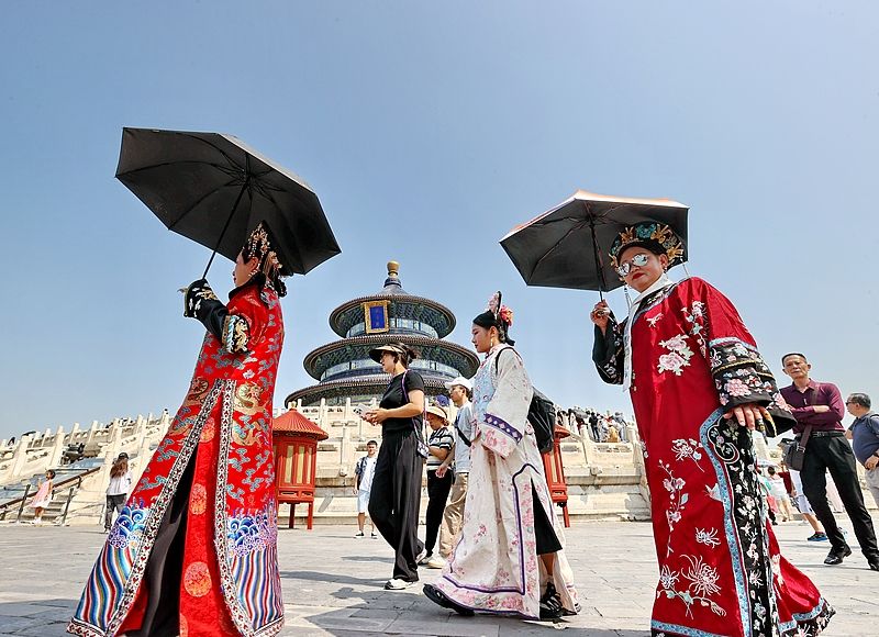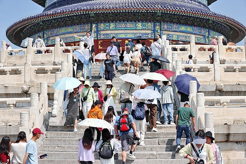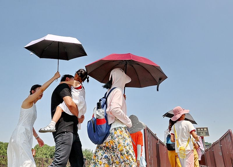 北京高温“炙烤”加码 游客顶烈日游览天坛公园