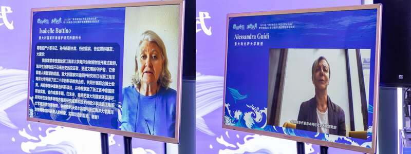 意大利国家环境保护研究所副所长Isabelle Buttino研究员、意大利比萨大学Alessandra Guidi教授、意大利贝加莫大学Antonio Granata教授在线上与中方代表共话海洋保护与科研合作未来,表达了深化海洋生态保护与科研合作的强烈意愿。