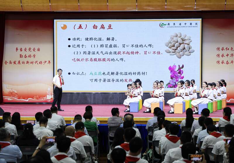 当天,广东省中医院院长张忠德为少先队员们带来《夏季养生有妙招》公开课,他围绕广东夏季气候特点,讲解了陈皮、莲子、紫苏叶等厨房常见夏季养生食材的功效,演示岭南特色凉茶的养生原理,并通过趣味互动带领大家识别身体不同部位“湿”的表现,传授穴位按摩等祛湿小技巧,让少先队员们沉浸式感受中医药文化的实用价值。
