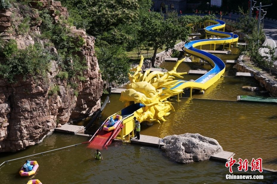 6月20日,在北京平谷梨树沟休闲谷景区,游客体验3千米长的森林漂流项目。当日,该漂流项目正式开门迎客。中新社记者 张祥毅 摄