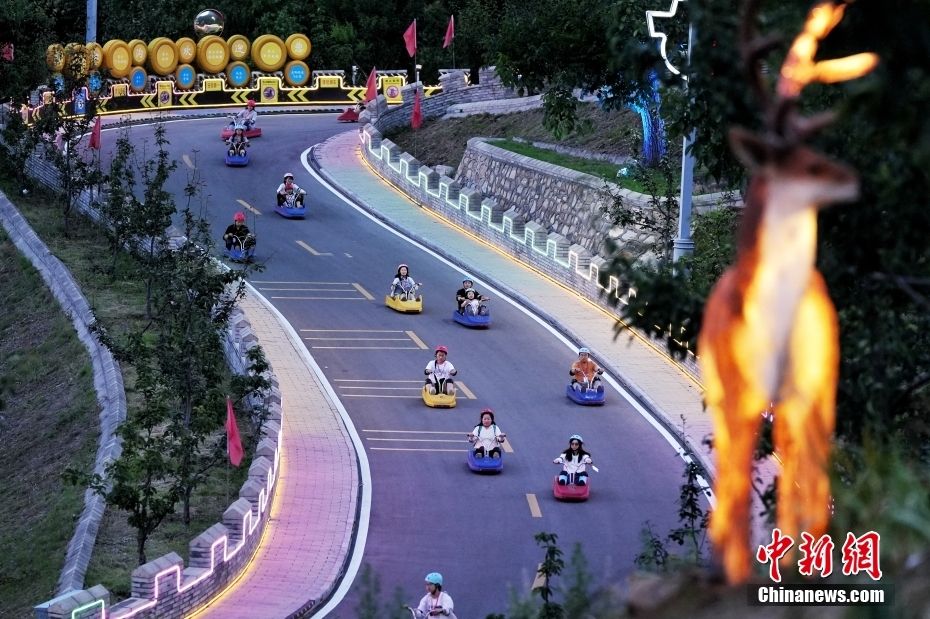 6月20日,在北京平谷梨树沟休闲谷景区,游客体验山地滑车项目。中新社记者 张祥毅 摄