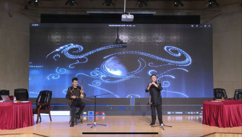 在中央民族歌舞团与学院师生开展的文化交流活动中,中央民族歌舞团赵雄以“艺术作品融合性创作的探索与实践”为脉络,解析中华音乐文化;赵雄、阿地力·阿不力孜共同演奏《相生相应》,奏响了中华文化多元一体的华彩乐章。同时,中央民族歌舞团的演员们和哈尔滨音乐学院学生通过民乐演奏、民族舞蹈等互动深化民族团结进步教育。