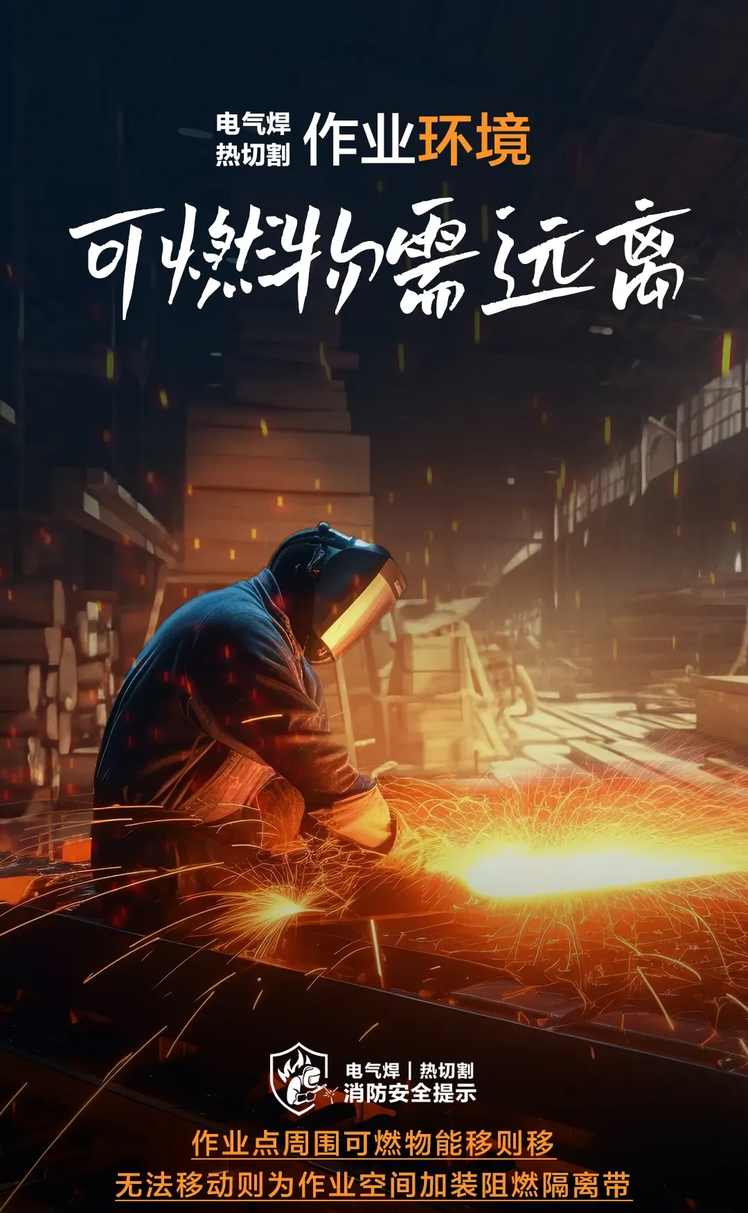 监控画面显示,9时19分,两名身穿红色衣服的工人和一名身穿蓝色衣服的工人先后进入现场安放梯子拉接电线,为焊割作业做准备。现场视频显示,焊割作业区域有大量塑料绿植,焊割作业点下方有不少杂物,按照要求在进行焊割作业前,必须将焊割作业点下方和周边的易燃可燃物进行清理,遗憾的是他们并没有这么做。