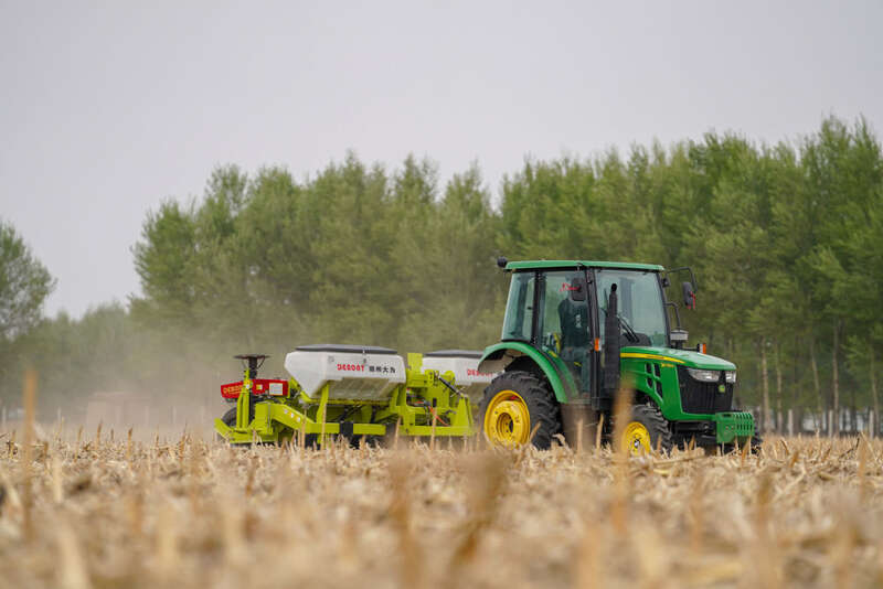 经过多年试验和推广,东北逐步形成以秸秆覆盖、少耕免耕为特点的吉林“梨树模式”等多种行之有效的保护性耕作模式。这是2020年5月7日,吉林省四平市梨树县的农民驾驶免耕播种机播种玉米。