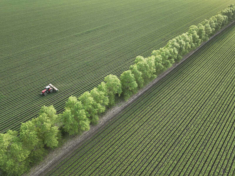 2024年6月25日,在黑龙江省北大荒集团鹤山农场第一管理区一大豆地块,大型机车在进行中耕作业,为土壤增温放寒(无人机照片)。