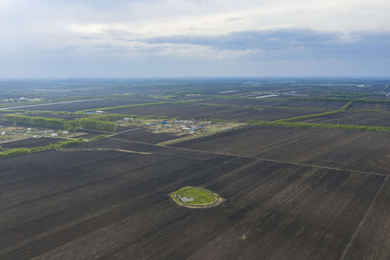 黑龙江省海伦市前进镇自新村农业科技示范基地内一处用来观测黑土层厚度的土壤剖面(2022年5月23日摄)。