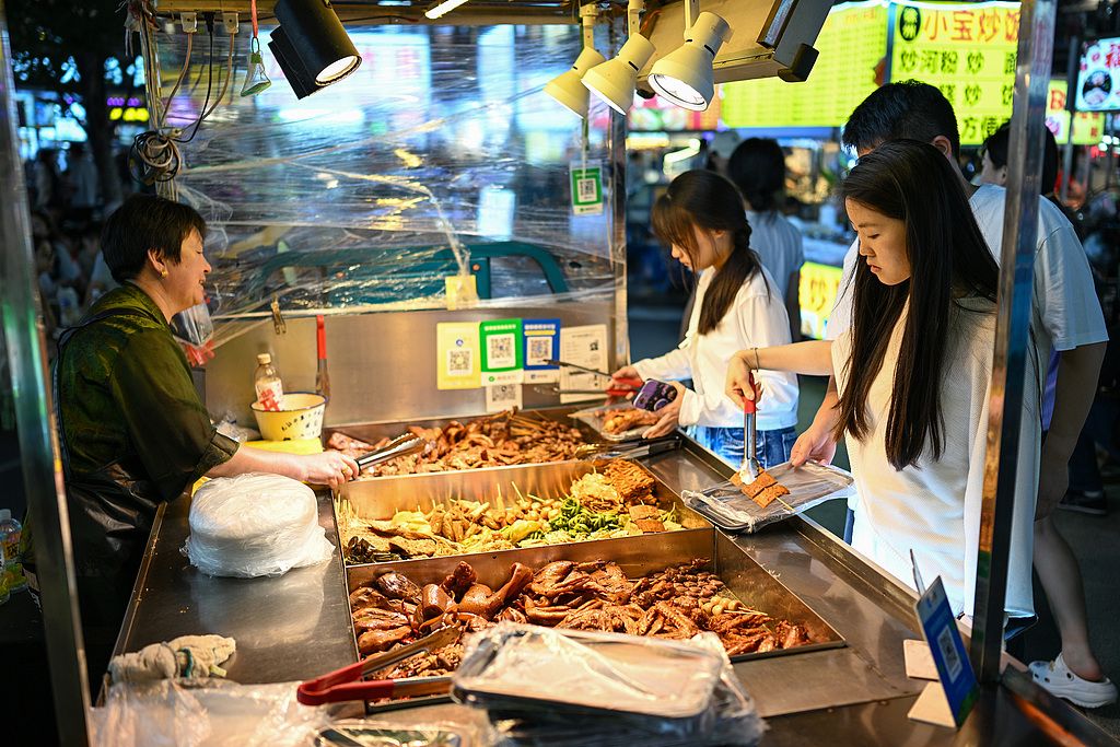 南京:夜市小吃摊林立 食客络绎不绝