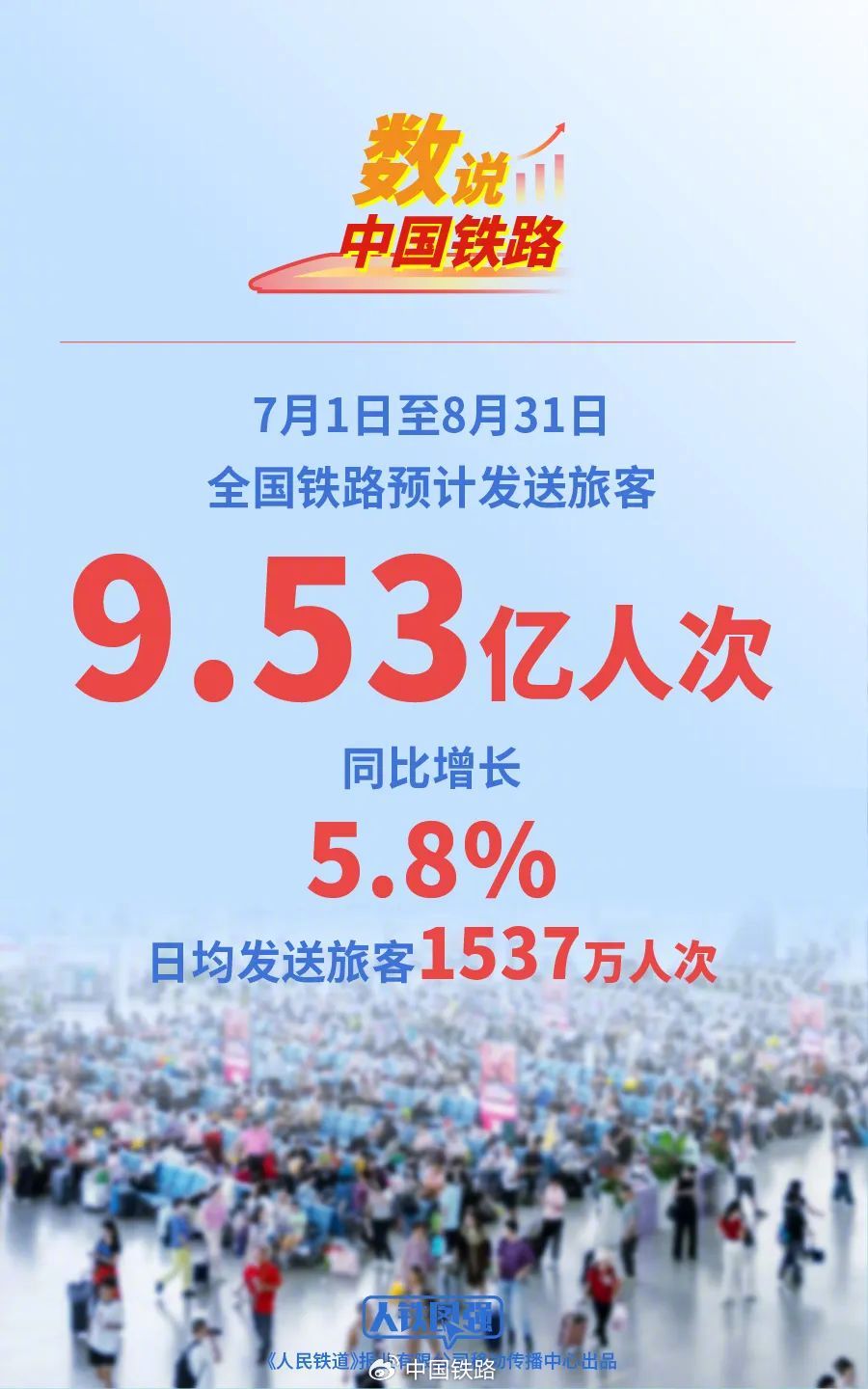 7月1日,为期62天的2025年全国铁路暑期运输将启动。7月1日至8月31日,全国铁路预计发送旅客9.53亿人次,同比增长5.8%,日均发送旅客1537万人次。
