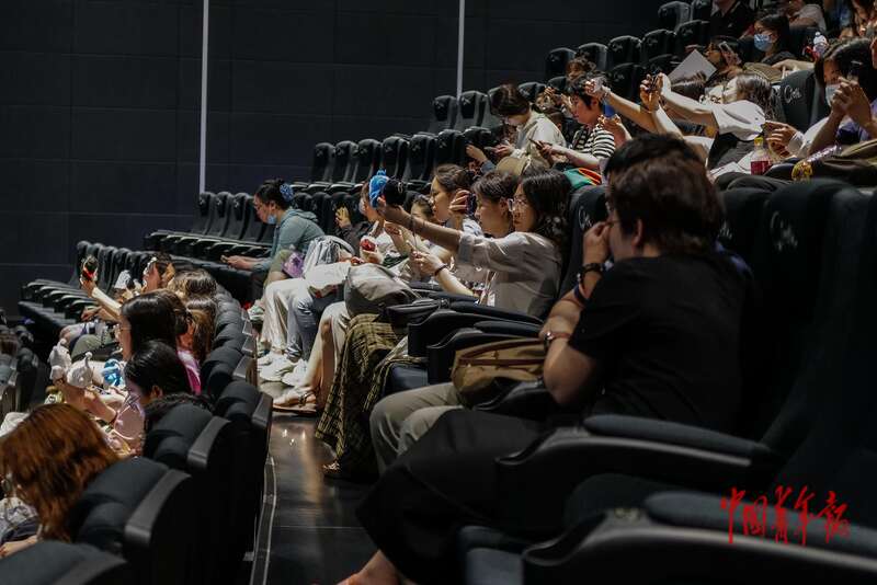 6月30日晚,北京市朝阳区一家电影院,该影院最后一场《哪吒之魔童闹海》播放完后,久久不愿离去的观众。中青报·中青网记者 赵迪/摄