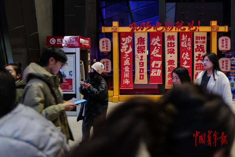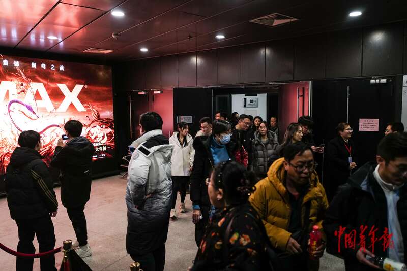 2月13日晚,北京,中国电影博物馆,观看完《哪吒之魔童闹海》的观众离场。统计数据显示,当日,该片票房(含预售)超过100亿元,成为我国影史首部百亿元票房影片。 中青报·中青网记者 赵迪/摄