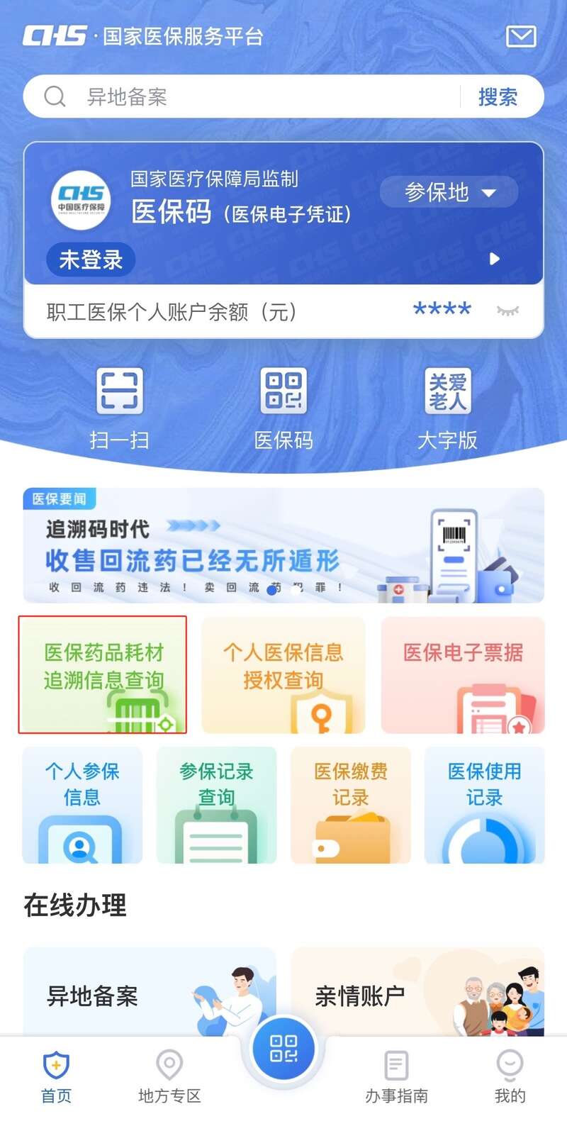 通过“国家医保局”微信公众号,点击“医保服务”,会有一个“国家医保服务平台”,点开“药品追溯信息查询”模块,也可以实现扫码查询或者输号查询。