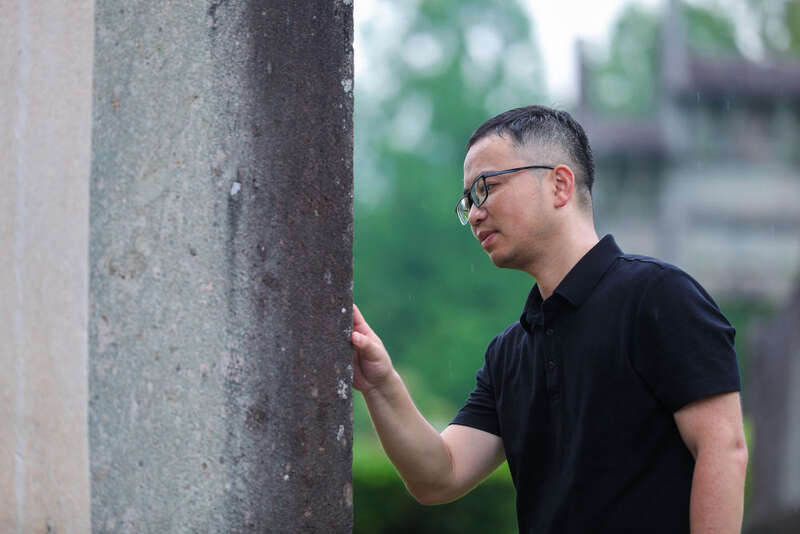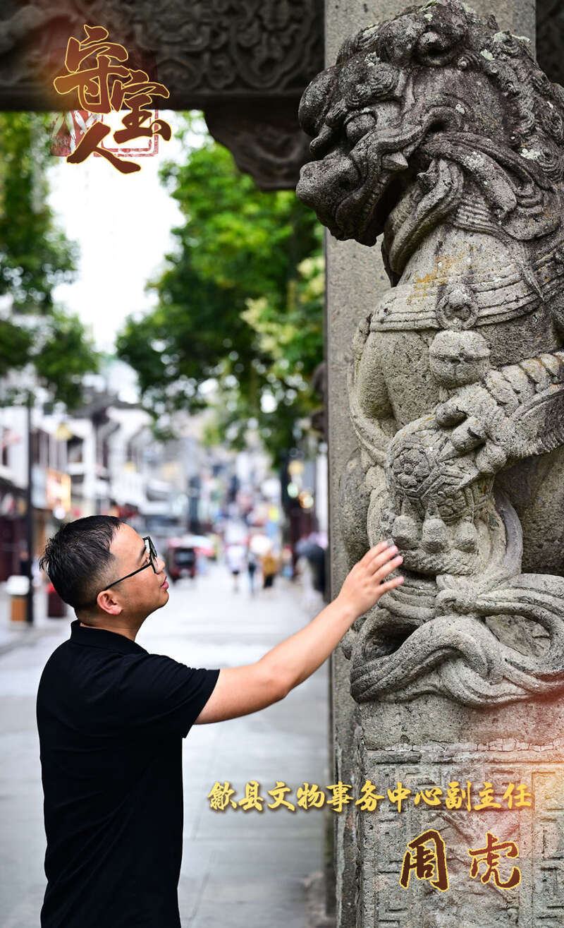 今年33岁的周虎毕业于安徽大学考古专业,因为喜爱徽州文化,2016年研究生毕业时,他参加选调生考试来到歙县,从事文物修复工作,现任歙县文物事务中心党组成员、副主任。歙县是古徽州府治所在地,被誉为“一座没有屋顶的徽派文化艺术馆”,城内文物古迹众多,古街、古巷、古桥纵横交错,民居、祠堂、牌坊相得益彰,全国重点文物保护单位多达22处。周虎和同事们负责全县文物的安全巡查、保护修缮工作。工作近十年来,周虎先后参与多个国家级、省级重点文物保护单位的修复工作,经手修复的文物超过千件。他和同事们像医术高超的医生,让这些古老建筑重获新生。