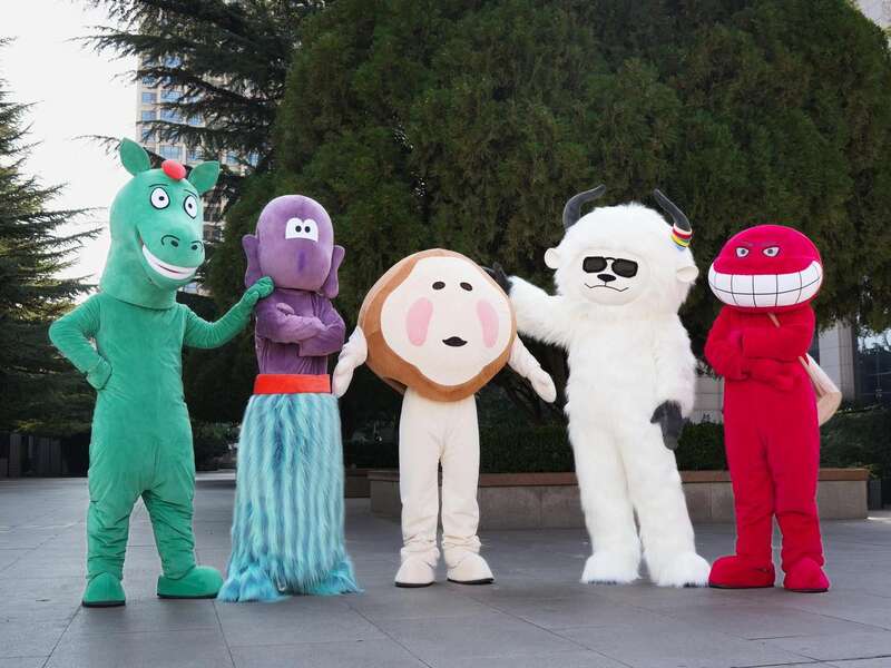 设计师“老王”主导设计的“甘博F5”,团员中有大家熟悉的绿马,还有拟人化的鲵鱼纹彩陶瓶、蛙纹彩陶壶。简单地做一个毛绒瓶子意思不大,团队提取鲵鱼、蛙纹元素,“反客为主”,让鲵鱼、蛙当主角,背上自己的毛绒瓶子,上演数千年后的“相爱相杀”。