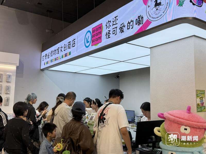 虽是高温天,甘肃省博物馆大门口却常常排起两条长队,一条是为了进馆参观,另一条在博物馆文创中心的结账柜台。