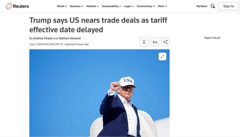 与此同时,特朗普继续施展“极限施压”策略。他在美国独立日庆祝活动期间告诉媒体,白宫准备在本周向贸易伙伴发送一批信函,涉及“不同数额的金钱、不同数额的关税,以及有些许不同的声明”。特朗普同样没有公布他这次施压针对的目标。