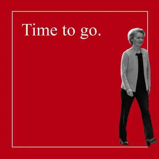 7月9日,匈牙利总理欧尔班在社交平台上分享了一张冯德莱恩的图片,被认为是在暗示她辞职。俄罗斯“今日俄罗斯”电视台称,这张图与美国《时代》周刊此前关于美国前总统拜登的杂志封面相似。2024年7月,拜登宣布退出美国大选,支持提名时任副总统哈里斯为民主党总统候选人。《时代》为此制作了一期封面,图中拜登离去,哈里斯入画。