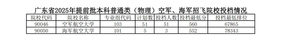 7月10日,记者从广东省教育考试院获悉,目前,空军、海军招飞已完成录取工作,其中空军招飞录取51人,海军招飞录取3人。