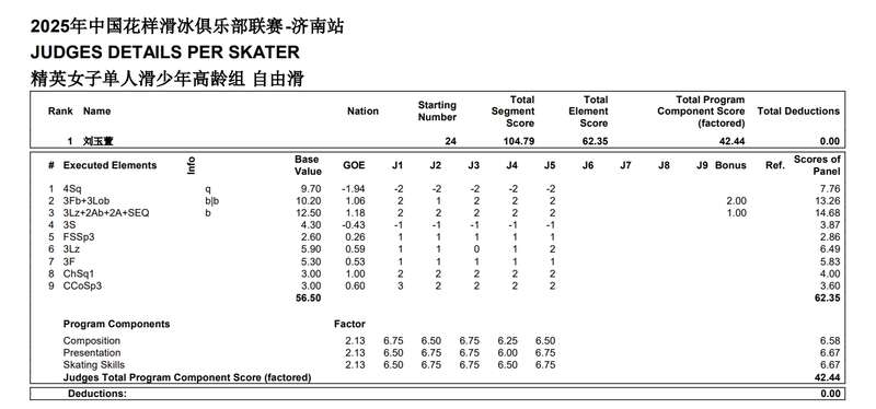 中新网7月10日电 在今日进行的2025年中国花样滑冰俱乐部联赛济南站精英女子单人滑少年高龄组自由滑比赛中,年仅12岁的刘玉萱在挑战萨霍夫四周跳(4S)时成功落冰,该跳在赛后评分中得到了完整的基础分值。根据统计,刘玉萱成为首位在全国性赛事中完成四周跳的中国女子单人滑选手。