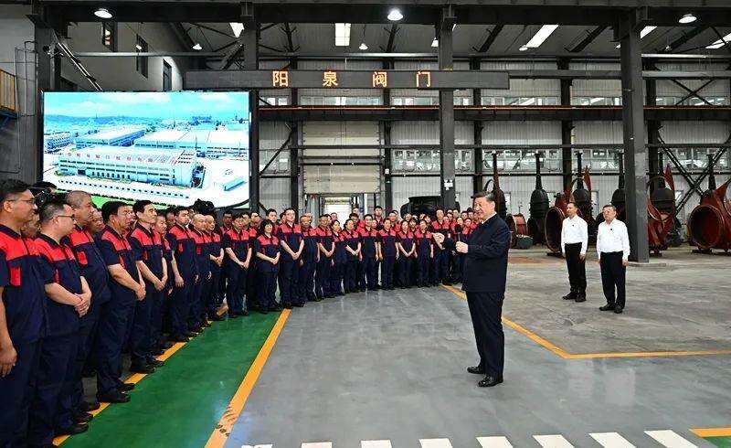 7月7日,在山西考察的习近平总书记来到阳泉阀门股份有限公司,察看企业生产车间和产品展示,同现场工人亲切交谈,详细了解煤气闸阀、电动翻板阀等产品生产和销售情况。
