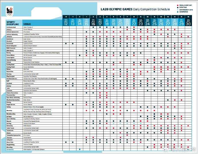 2028洛杉矶奥运会倒计时三周年之际,官方赛程正式公布。同时,洛杉矶奥运会开闭幕式时间确定。