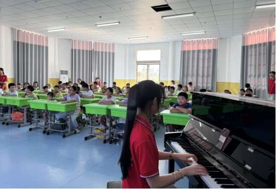 中国青年报客户端讯(徐世平 陈志宏 中青报·中青网记者 王海涵)“没想到孩子们这么爱唱歌。”7月13日,2005年出生的安徽滁州学院音乐与教育学院学生徐苗苗带领安徽省滁州市明光市潘村镇乡村儿童支教课堂的孩子唱起红歌。“这些天,我自带饭盒,但常常饭菜凉透了才想起吃,可看着孩子们围着我,要我把歌曲的旋律写在他们的手背上,我觉得这比热菜更暖心。”