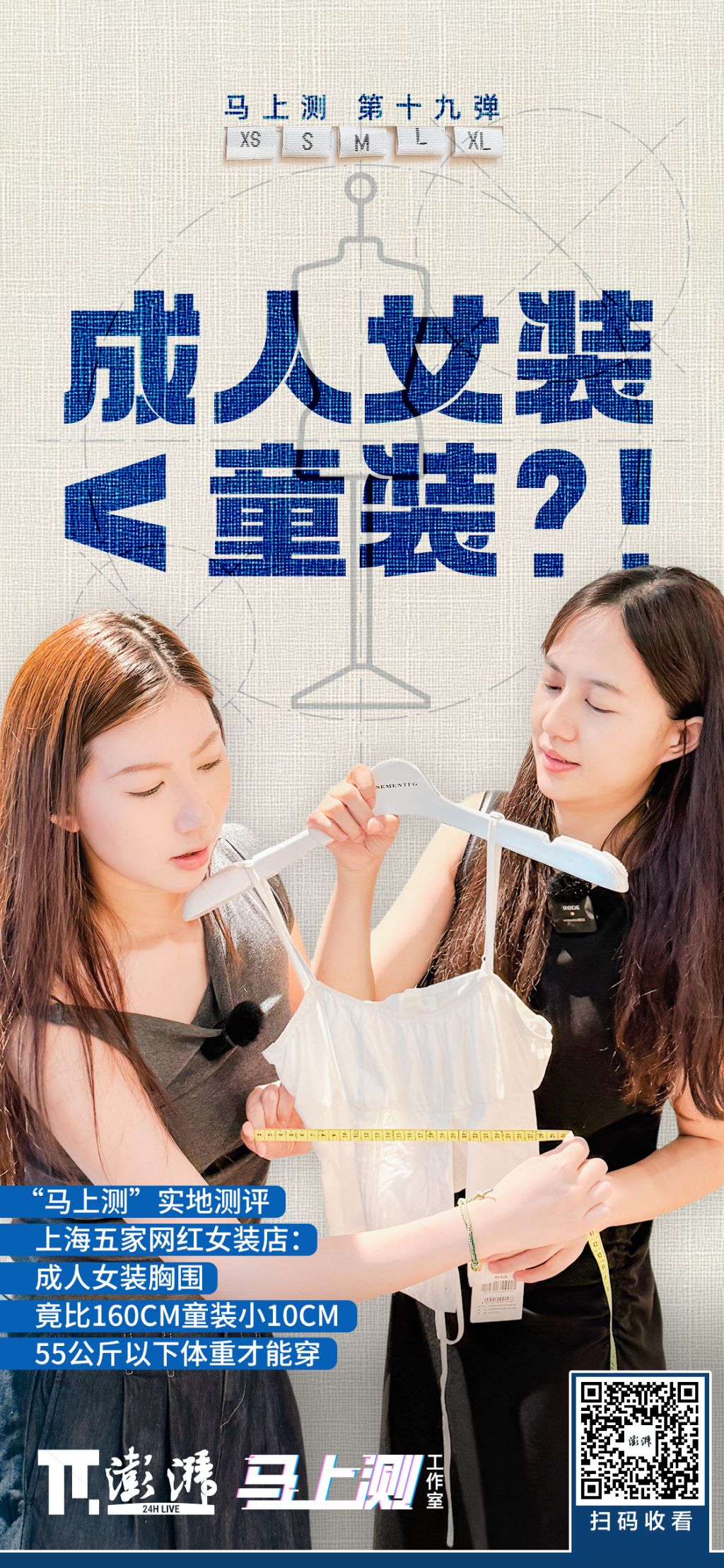 “这件小了,完全穿不上身;那件也不行,肩膀卡住了!这些衣服究竟是女装还是童装?!”近年来,关于女装尺码“缩水”的吐槽越来越多,带着这样的疑问,澎湃新闻“马上测”实探多家较火的网红女装店。